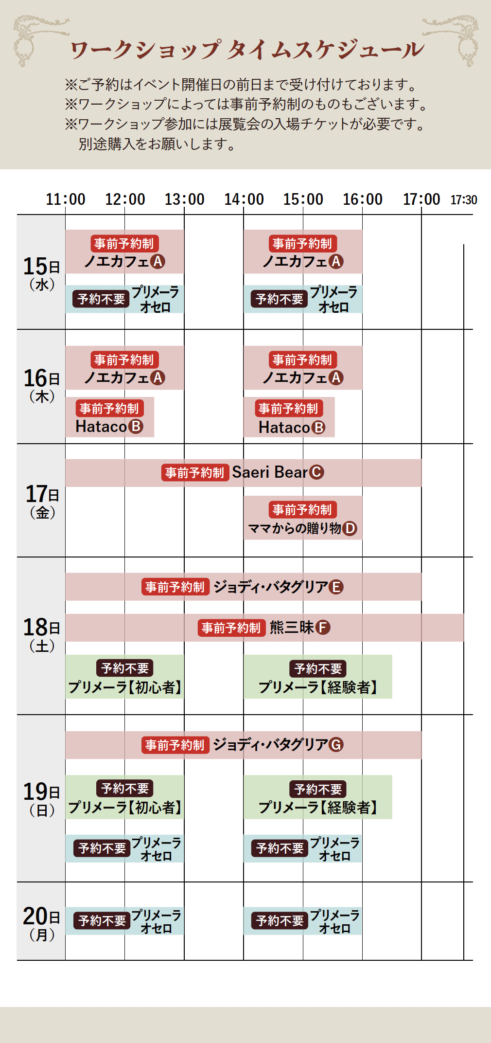 ※アーティストにより出展時間が異なる場合がございます。