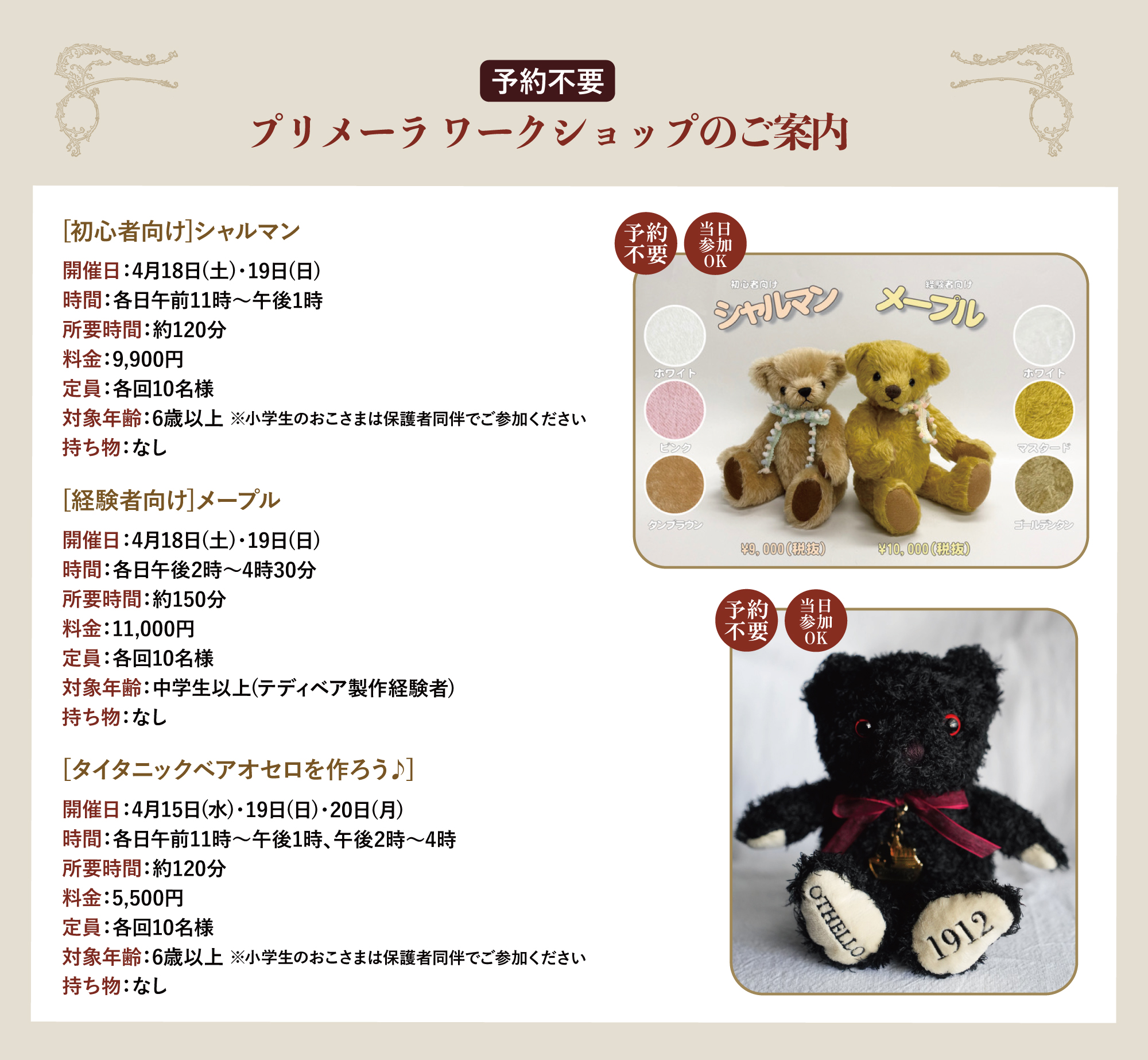 ぜひ、お手持ちのテディベア(お写真でも可)をお持ちください。